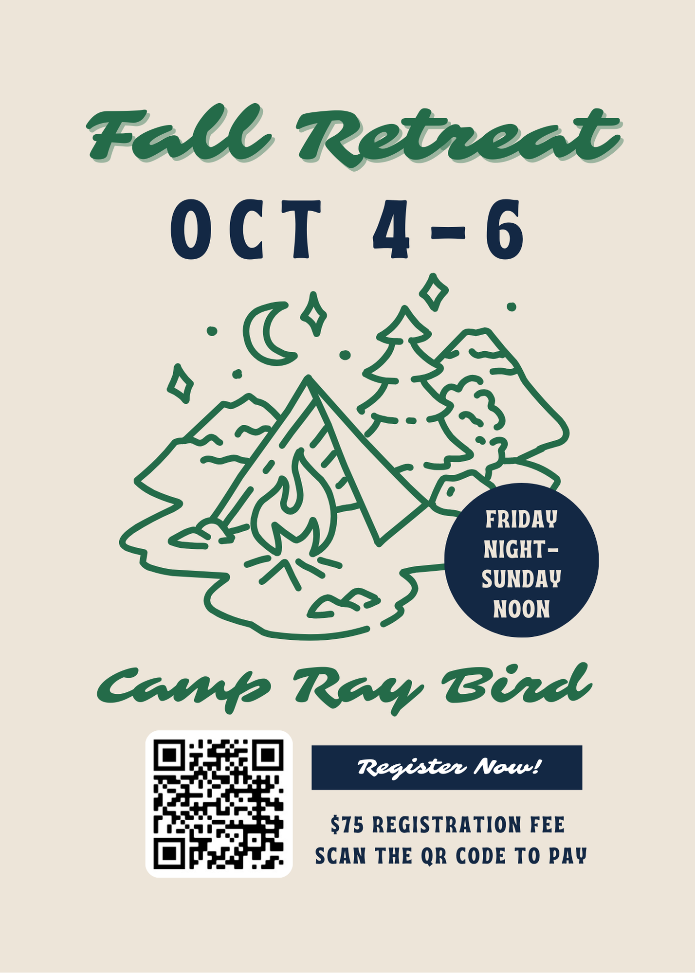 Fall Retreat Sept.26-28th- Camp Ray Bird, South Bend. Cost is $89 includes 2 nights lodging & food